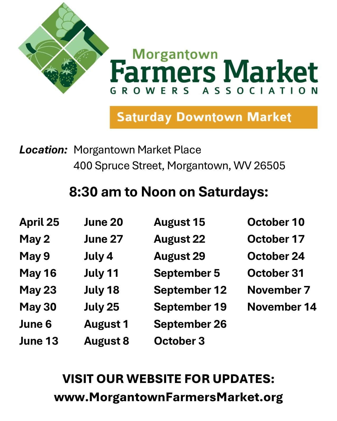 The Morgantown Farmers Market is a Main Street Morgantown Affiliate Event.