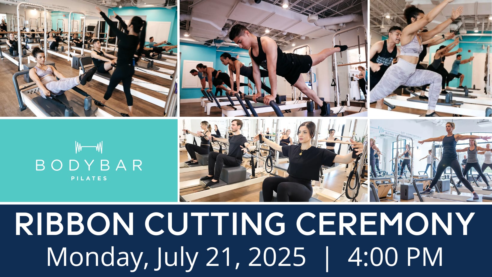 Join us to celebrate the ribbon cutting and grand opening for BODYBAR Pilates! At BODYBAR, they meet you where you are today and challenge you to Raise the Bar for tomorrow. Their goal is to empower individuals to embrace their inner athlete, tapping into their source of strength, resilience, and determination through the power of Pilates. Tours and refreshments will be available.