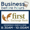 Join us for Business Before Hours hosted by First Exchange Bank. Come start to your day by networking with other members as you enjoy breakfast, coffee, and more. Registration is required.