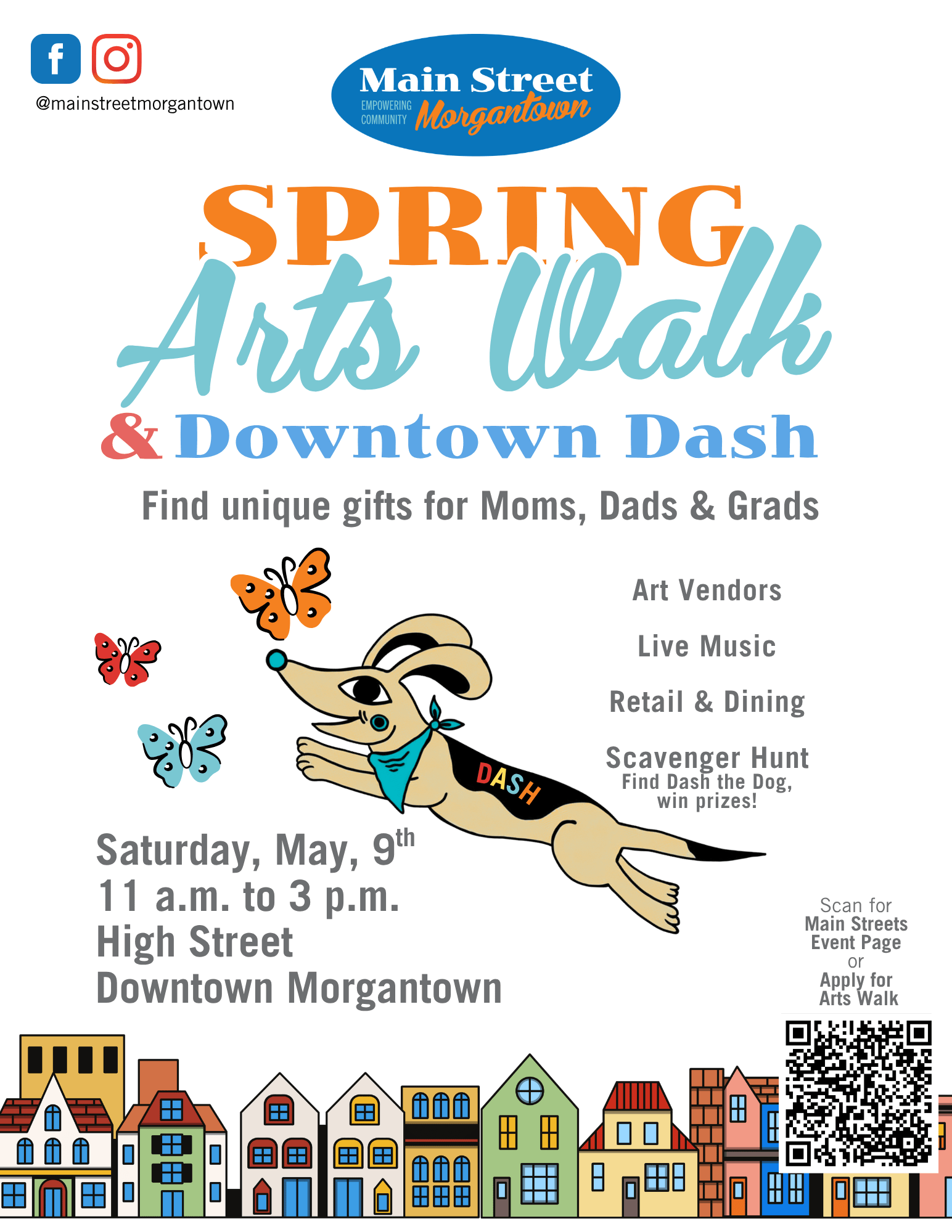 The Spring Arts Walk x Downtown Dash will take place Saturday, May 9, 2026, from 11 a.m. to 3 p.m. in downtown Morgantown, bringing together artists, makers and local businesses for a vibrant, district-wide experience.